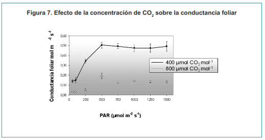 A nivel foliar el aumento de la concentración de CO reduce la conductancia foliar (Figura 7). Sin embargo, cuando se analiza el efecto a escala de dosel vegetal el efecto sobre la absorción hídrica pierde relevancia y la reducción de la absorción hídrica en los